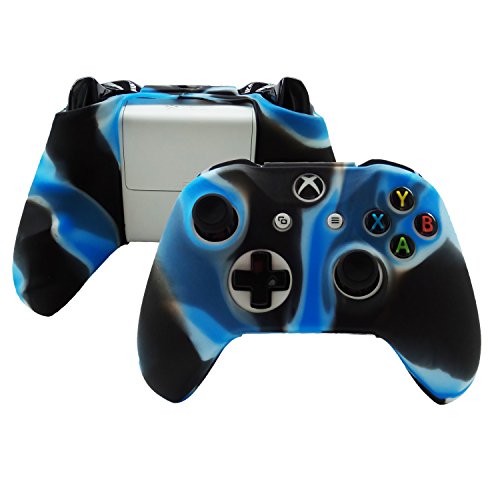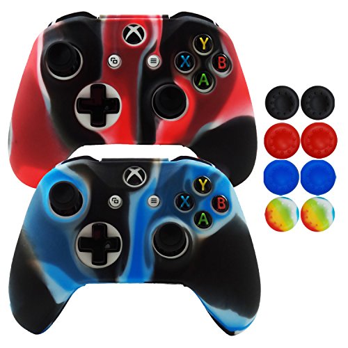 Hikfly Antiscivolo Tempestato Olio di Gomma Silicone Controllore Copertina con 4pcs Thumb Grips Kit per Xbox One Slim/Xbox One S/Xbox One X Controller (Roso Blu Camuffare)