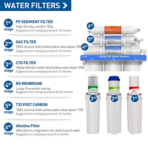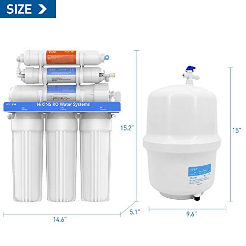 HiKiNS, Sistema di filtraggio dell'Acqua a osmosi inversa RO-150G, a 6 Fasi, con Membrana a Flusso Largo, 150 GPD ed efficienza di Risparmio idrico, Certificato FDA