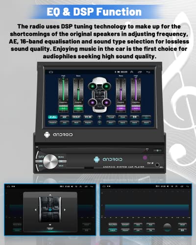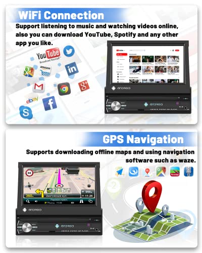 Autoradio 1 Din Android: L'autoradio 1din utilizza il sistema operativo Android con 2GB di RAM e 32GB di memoria flash per garantire un funzionamento fluido e veloce. Questa autoradio bluetooth è dotata di un touch screen manuale pieghevole da 7 pollici a 1080P ad alta definizione, che risponde istantaneamente e senza ritardi