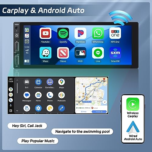 Hikity 2G 32G Android 13 Senza Fili Carplay Autoradio 1 Din con Schermo Touch Screen da 6,86Pollici Auto Radio con GPS Bluetooth Mirror Link FM WIFI 2USB EQ Controllo del Volante Telecamera Posteriore