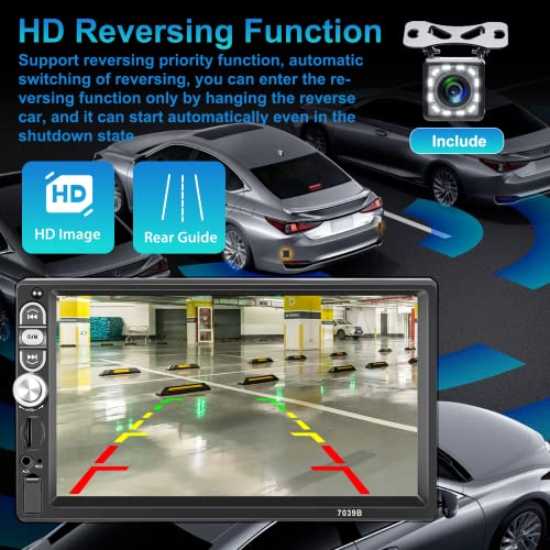 【Autoradio con Telecamera Revese】 L'autoradio bluetooth verrà fornita con una telecamera di backup per un parcheggio sicuro e conveniente. Quando si tira la retromarcia, il video di retromarcia verrà visualizzato automaticamente sullo schermo dell'autoradio. Supporta le funzioni di controllo del volante dell'auto
