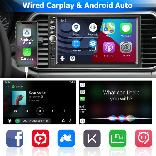 Stereo Auto 2 Din Compatibile con Carplay e Android Auto: Carplay e Android Auto integrati. È sufficiente collegare lo smartphone tramite il cavo USB originale per accedere alla navigazione su mappa, alle notifiche, alle e-mail, alla musica, al controllo vocale e altro ancora. Equalizzatore EQ incorporato per ascoltare musica di alta qualità, 7 opzioni di colore delle luci chiave.