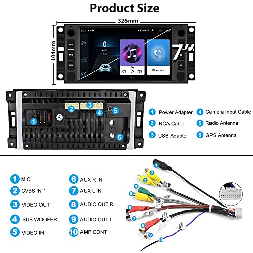 Autoradio 2 Din Android per Jeep: Autoradio Basato sull'ultimo sistema operativo Android 10, 1G RAM e 16G ROM, Quad-Core, più reattivo e sensibile. Autoradio touch screen da 7 pollici con doppio ingresso adattatori USB, porta di uscita/ingresso RCA.