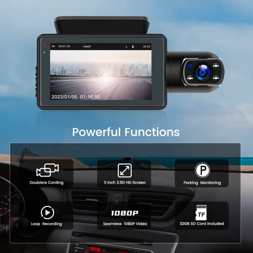 Hikity Dashcam Doppia Telecamera per Auto, Schermo IPS 3", Dash Cam con FHD 1080P Visione Notturna, Grandangolare di 150°,Registrazione in Loop, Monitor di Parcheggio, Scheda SD da 32 GB Inclusa