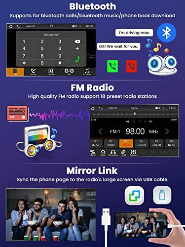 Hikity Doppio Din Touchscreen Stereo Auto Bluetooth con Wireless Apple Carplay e Wireless Android Auto 7 Pollici Autoradio Bluetooth 2 Din con Schermo Mirror Link 6-USB Ports FM AUX TF SWC Telecamera