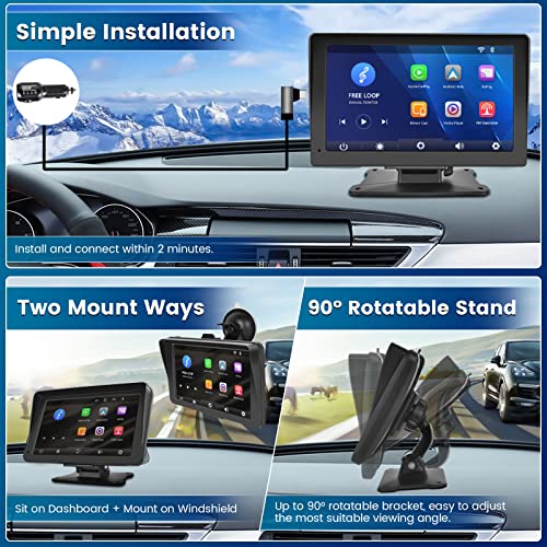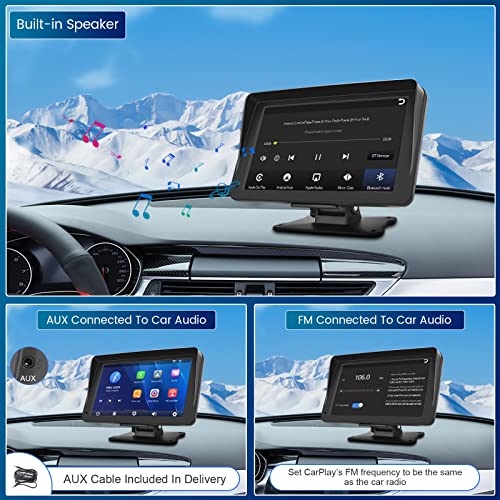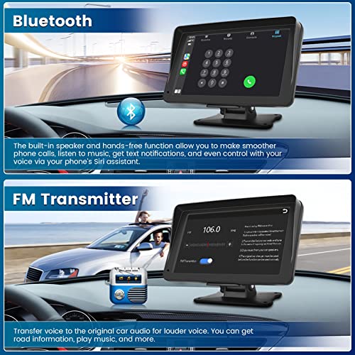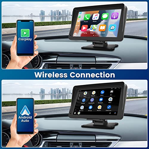 Hikity Senza Fili Carplay Android Auto Portatile Autoradio 7Pollici Touchscreen Apple Carplay Display Portatile Monitor con Bluetooth Apple Airplay Trasmissione FM Mirror Link Controllo Vocale 7V-32V