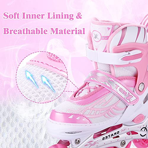 Hikole Pattini in linea regolabili per bambini e adulti, Rollerblade per ragazze, 3 misure con ruote completamente leggere, pattini in linea per principianti ragazzi, ragazze, donne, uomini, ragazzi