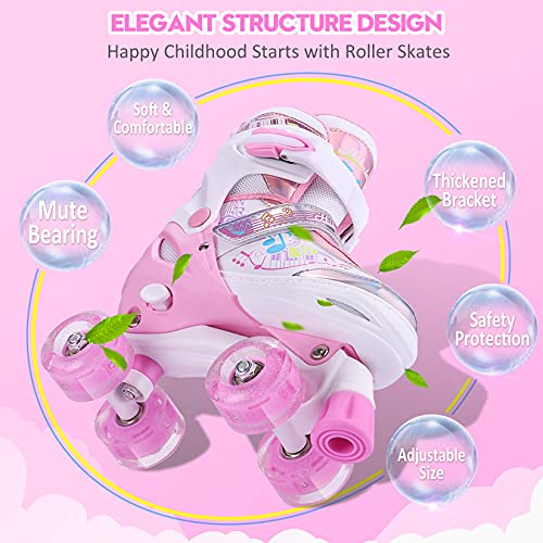 Hikole Pattini a Rotelle Regolabili Pattini a Rotelle Bambina 4 Anni Pattini a Rotelle Led Per Principianti Bambini e Ragazzi Pattini 4 Ruote Bambino 6 Anni Rosa