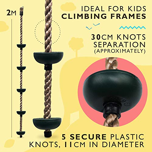 Hiks - Corda da Arrampicata con 5 Nodi di plastica per Ragazzi - Ideale per Case sugli Alberi e strutture per l'arrampicata