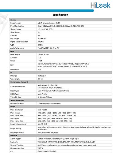 2.8 mm fixed focal lens,Up to 30 m IR range, Dual stream