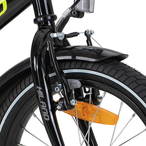 HILAND Bicicletta per Bambini 16 Pollici per Ragazzo e Ragazza 4 5 6 7 Anni, Bici con Sedile Posteriore/Portapacchi, Freno a Mano e Contropedale, Nero