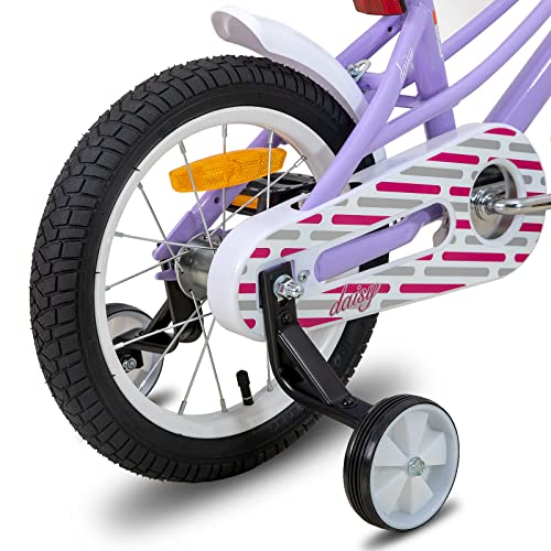 HILAND Daisy Bicicletta per Bambini 14 Pollici con Freno a Mano, Freno a Morsetto, Campanello e Cestino, Viola Chiaro