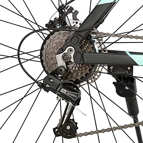 ° Il freno a disco e la leva del cambio a 21 marce di questo MTB garantiscono un controllo totale in ogni situazione