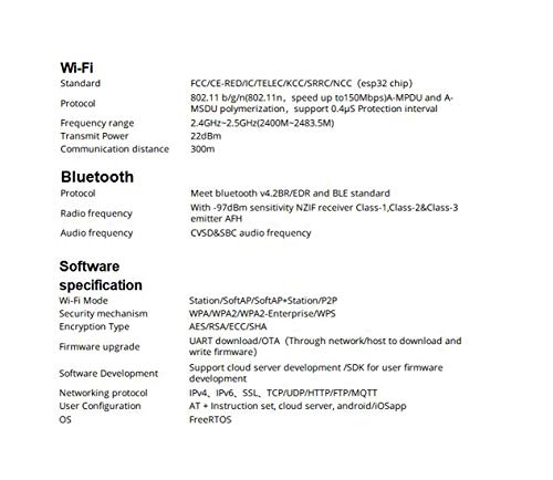 Chipset: ESPRESSIF-ESP32 240MHz Xtensa single-/dual-core 32-bit LX6 Microprocessor