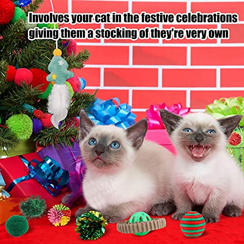 ►►Set di giocattoli natalizi per gatti di valore - Il nostro set di giocattoli con piume di gatto include un totale di 10 diversi giocattoli divertenti per gatti e gattini, tra cui un topo di peluche, un teaser di Babbo Natale, un pesciolino, una renna di peluche, una palla e molti altri altri stili per gatti e gattini con cui giocare.