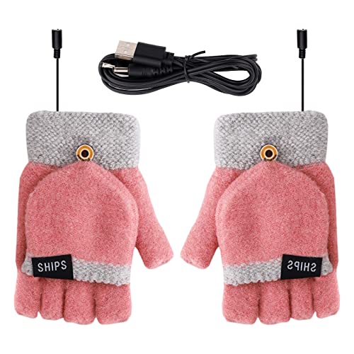 Hileyu Guanti riscaldati USB Invernali Lavorati a Maglia Caldi Guanti USB Guanti Riscaldanti Uomini Donne Inverno Riscaldamento Elettrico Caldo Guanti Sportivi Guanti Mitten Pink Gray