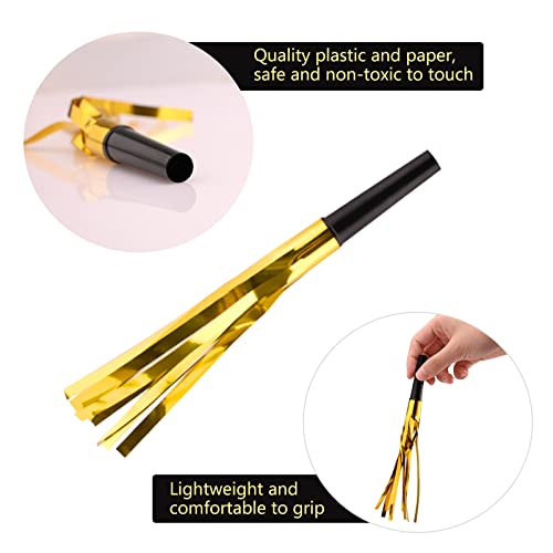 【Pacchetto incluso】 Riceverai una confezione da 24 di noisemaker con nappe dorate a tubo nero, sufficienti per tifare con la famiglia, gli amici e i colleghi.