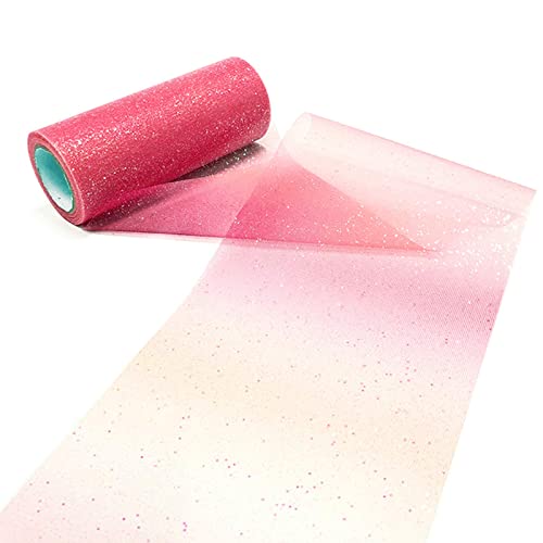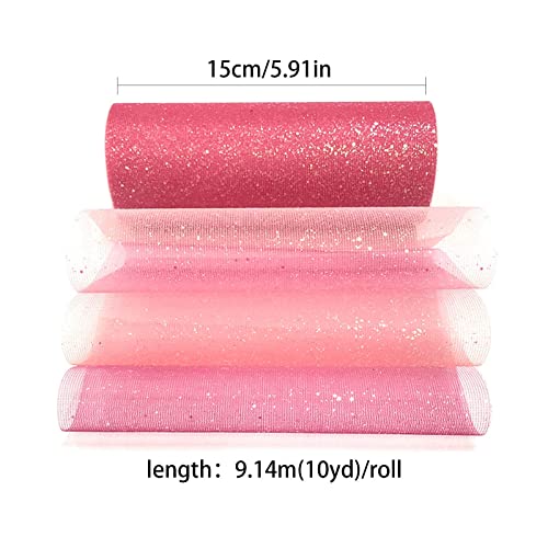 Hileyu Rotoli di Tulle Glitter Arcobaleno Tulle colorato 6 Pollici x 10 Iarde Tessuto reticolato Glitterato Bobina di Tulle Rotolo di Nastro Tulle Scintillante Rotolo Tessuto con Paillettes Rosa