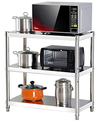 Hilier, scaffale a 3 ripiani in acciaio inox per pentole e forno a microonde, scaffale da cucina autoportante 80 cm