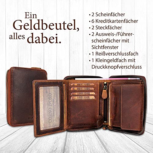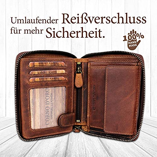 Misure esterne: 13 X 10 x 2,5 cm - Spazio sufficiente per banconote in scomparto per banconote da 100 Euro e 500 - tutte le tessere individualmente cuciture - Chiusura lampo integrale garantisce il portafoglio e chiusura sicura.