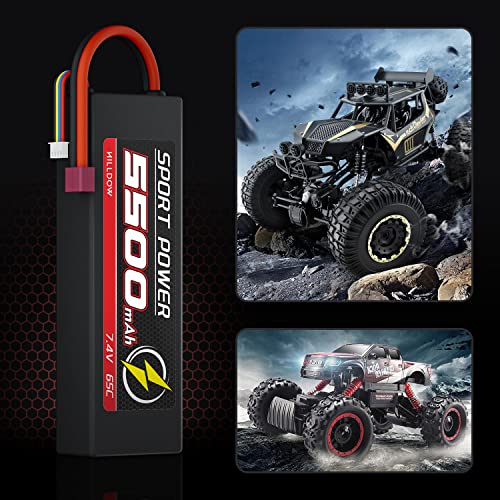 Hilldow M2 RC Batteria 2S Batteria Lipo 7,4V 65C 5500mAh mit Deans T Stecker, 2 Pack Hardcase Batterie Lipo Batteria Ricaricabile per RC Auto LKW Buggy Boot