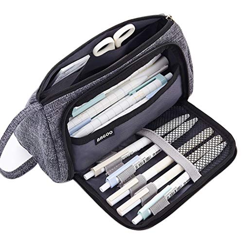 Hillento Astuccio portamatite tela colorata di grande capacità, porta penne con cerniera colorata, due diversi metodi aperti, grigio