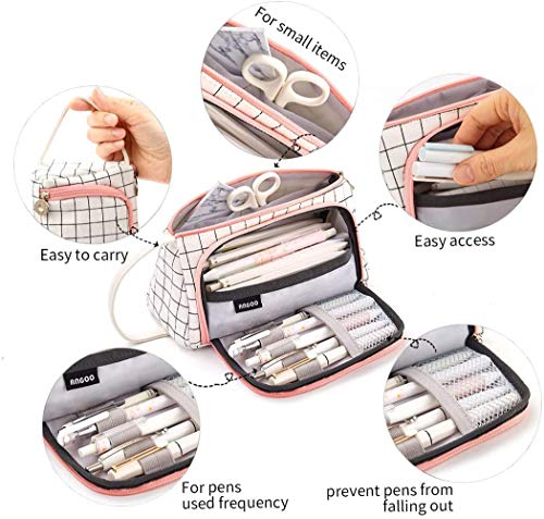 ampio spazio di archiviazione: due cerniere, grande capacità di archiviazione multifunzione , ospitare fino a 50 penne / matite e pennello per il trucco altri gadget.