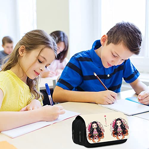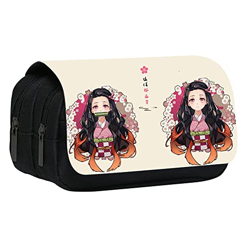 Hilloly Astuccio Demon Slayer Anime Kamado Nezuko Astuccio, Grande Capacità Sacchetto Penna 2 Scomparti Astuccio Portapenne Cosmetici Borse per Bambini Adolescenti Ragazzi Bambini Casa Ufficio Scuola