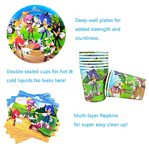 Hilloly 88 pcs Hedgehog Party Supplies Set Riccio Birthday Party Decorazioni Stoviglie per Feste di Compleanno Tazze Piatti Asciugamani di Carta Cannucce Banner Tovaglia