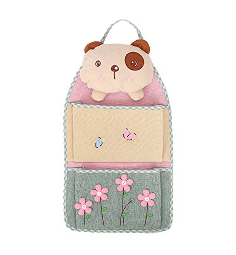 HilltopToCloud Portaoggetti Parete Porta in Lino Cotone Cartoon Orsino Bambole Organizzatore da Appendere Neonato 2 Tasche
