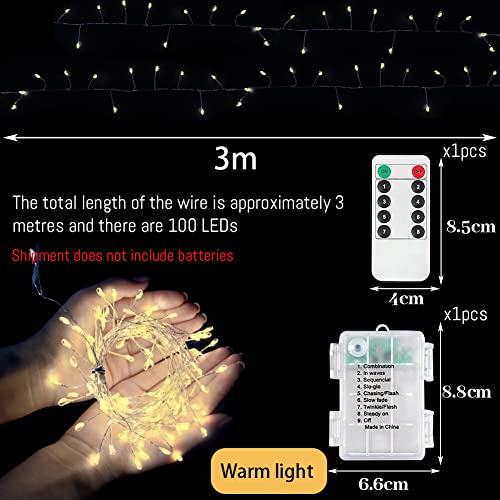 Hillylolly Lucine Led a Batteria, Stringa Luci Led Batteria con Telecomando, 3M 100LED Filo Luci Decorative, Ghirlanda Luminosa Led, Catene Luminose, Lucine Led Decorative (Bianco Caldo)