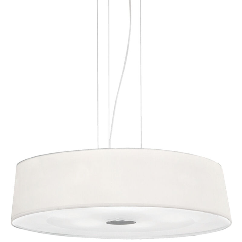 0Montatura in cromo. Paralume in lamina di PVC rivestita in tessuto. Sul fondo, diffusore in vetro trasparente sabbiato. Sospensioni con cavi a lunghezza regolabile Ø 500 x H min 400 / max 2150 mm max 4 x 60W E27 IP:20