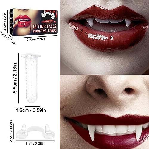 Design vivace e unico: il design unico delle zanne retrattili da vampiro ti porta nel mondo dell'orrore e dei veri vampiri. Le zanne da vampiro sono piccole e facili da trasportare, ed è più comodo e facile da indossare e utilizzare in un unico pezzo, affrettati e stuzzicare i piccoli amici che trascorrono Halloween insieme.