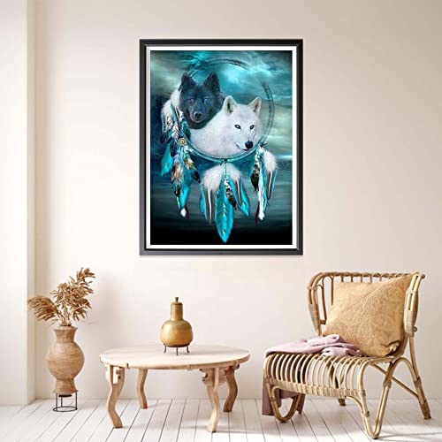 HIMBIU Set per diamond painting 5D con lupo, fai da te, per pittura con strass, decorazione da parete, 30 x 40 cm
