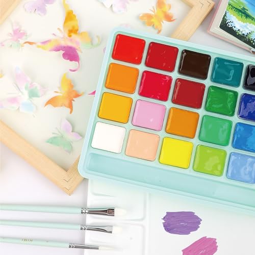 HIMI Gouache Set 24 Colori 30 ml Kit di Pittura a Guazzo con Pennelli Non Tossici Unico di Tazza di Gelatina Portatile Colori Gouache con Tavolozza per Artisti Studente