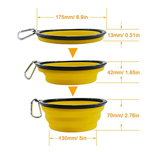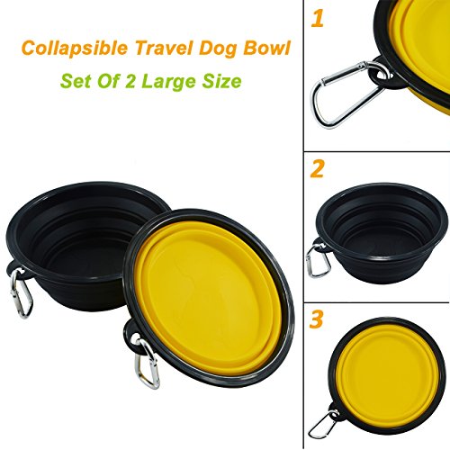 Himi 34 Ounce Silicone Collapsible Travel Dog Bowl - Set of 2 Large Size 1000ML - Portable Pet Bowl Food&Water - Premium Quality Travel Pet Bowl Solution(Yellow-Black)