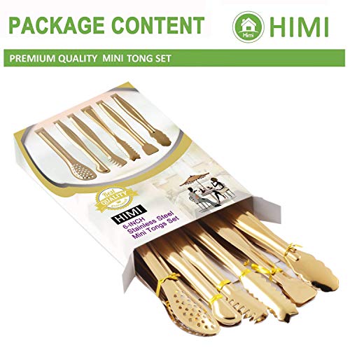 Himi piccole pinze per servire antipasti 15,2 cm - Mini pinze - Set di 6 - Premium pinze in acciaio INOX frutta verdura perfetto per casa, cucina, party Gold