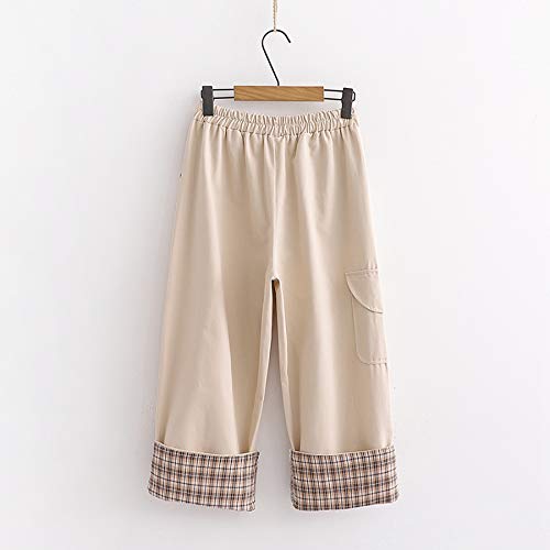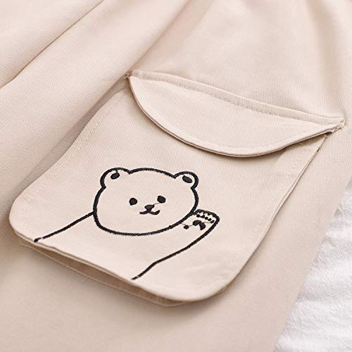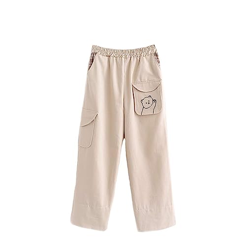 Himifashion Harajuku - Pantaloni da donna con ricamo a orso, elastico in vita cachi M