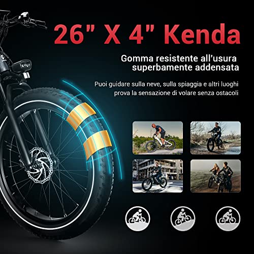 Himiway Zebra Bicicletta Elettrica per Adulto 96-128km Mountain ebike 48V 20Ah/960Wh LG Li-Batteria Fat Tire Bici Elettrica 26" X 4" Snow Fuoristrada Bike Elettrica 250W 25km/h Shimano 7 Uomo Donna