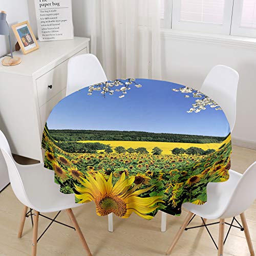 Himlaya Tovaglia Rotonda Impermeabile, 3D Girasole Stampa Tovaglie Cucina Antimacchia Antipolvere Lavabile Copritavolo Decorazione per sala da pranzo Tavola Rotonda Picnic (Cielo Blu,Diametro 150cm)
