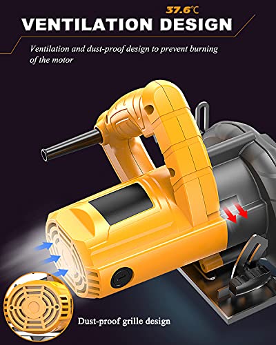 [Design della ventilazione] La sega circolare per uso domestico adotta un design a forte dissipazione del calore e un design della griglia a prova di polvere, che riduce efficacemente la temperatura del motore e impedisce alle particelle di polvere di entrare nella macchina.