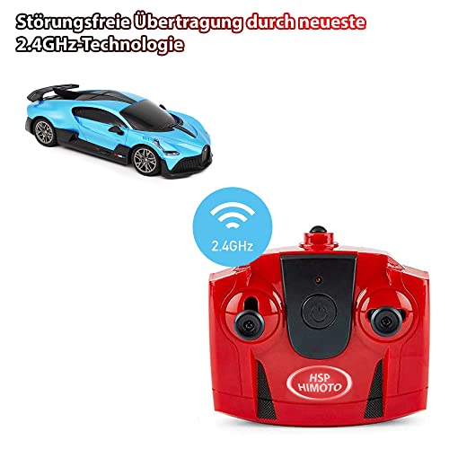 Himoto HSP Modellino auto radiocomandata compatibile con Bugatti Divo Blue Edition, veicolo in scala 1:24, fanale allo xeno, auto con telecomando da 2,4 GHz, pronto per l'uso