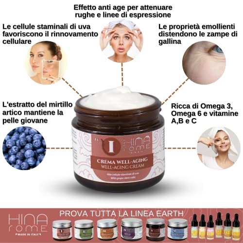 HINA Rome | Crema Antirughe Donna | Crema Viso Antirughe Pelle Mista | Crema Viso Donna e Uomo con Cellule Staminali di Uva Rossa, Omega Blu e Acido Salicilico | 100% Made In Italy | Roma 60 ml