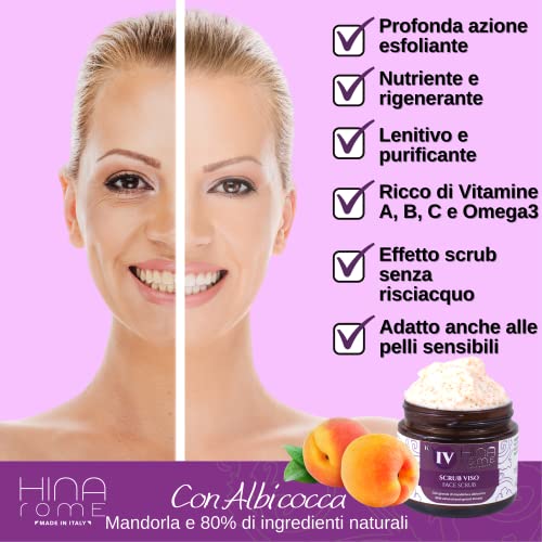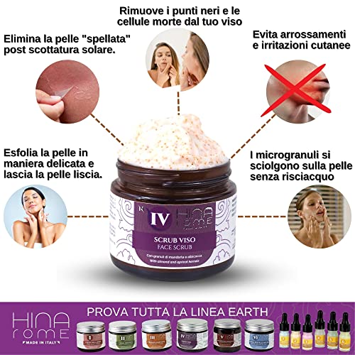 HINA Rome | Esfoliante Viso | Scrub Viso Donna | Scrub Viso Uomo con Ingredienti Naturali | Scrub Viso Pelle Grassa | Pulizia Viso con Granuli di Mandorla e Albicocca | Made In Italy 60 ml