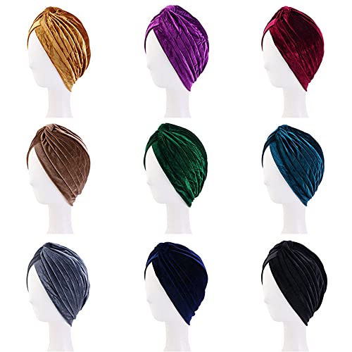 Hinleise Donne Velluto Turbante Caps Copricapo Avvolgere Capelli Cap Pieghe Berretti Fascia Chemo Cappelli Nightcap Cappello Perdita Dei Capelli Marrone