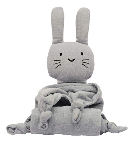 Hinrichsen & Co. Coperta per coccole a forma di coniglietto, in mussola di cotone, con pratica borsa (grigio chiaro)