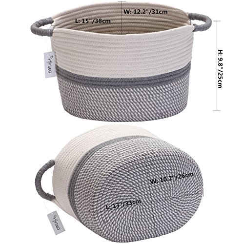 Hinwo Cestello portaoggetti in Corda di Cotone Pieghevole Cesto portabiancheria Contenitore per contenitori per nidi Contenitore con Maniglie, 15,7 x 12,6 Pollici