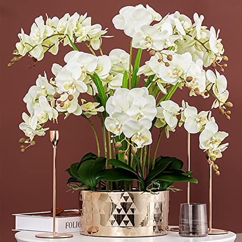 Stili decorativi: i rami del bouquet sono in grado di regolare liberamente l'angolo di piegatura. Puoi decidere la forma del bouquet in base alle tue esigenze. Piante con steli di orchidee finte perfette per la decorazione del ristorante dell'home office, anche un eccellente ornamento per le feste di nozze .
