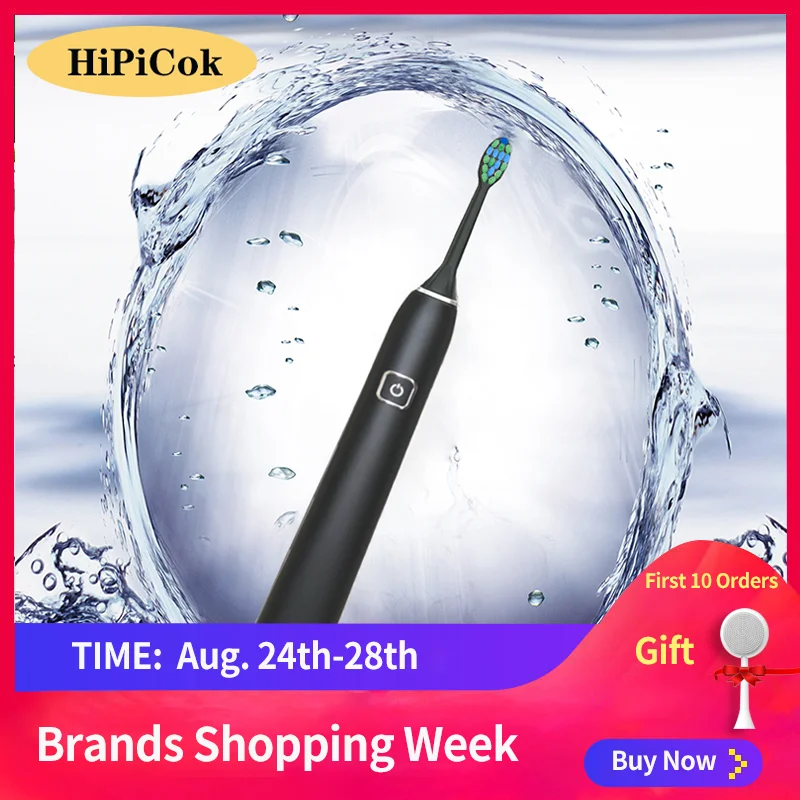 HiPiCok Sonic Electric Tooth Brushes USB Rechargable Waterproof Adult Ultrasonic Automatic Electric ToothBrush Replacement Heads