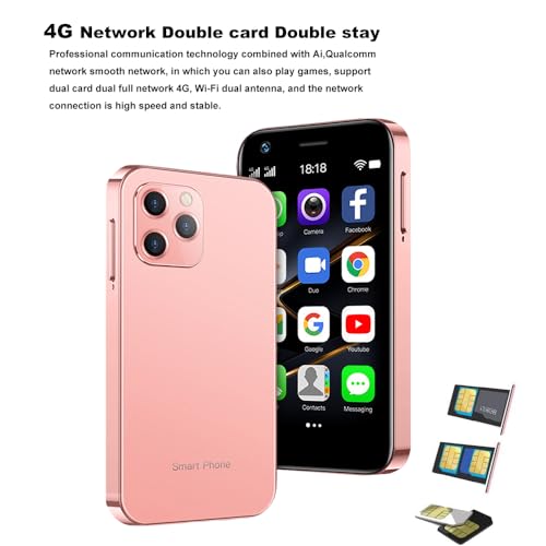 Hipipoo Mini telefono cellulare, smartphone sbloccato Dual SIM 4G, schermo HD da 3 pollici, Android 10.0, 4 GB di RAM + 32 GB di ROM, fotocamera da 5 MP + 13 MP, batteria da 2000 mAh(rosa)
